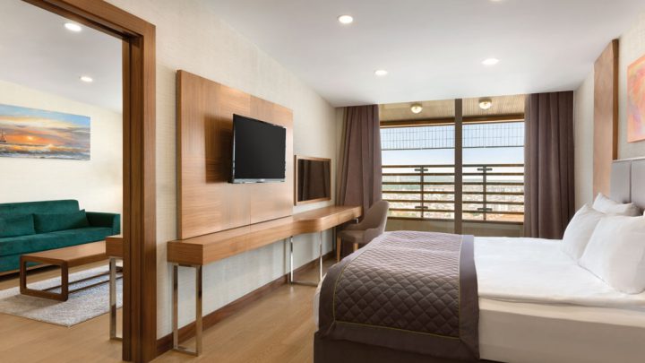 Suites are 65 square meters; It consists of 1 bedroom, 1 living room, 2 bathrooms (one with jacuzzi) and a spacious terrace. Located on the top floor of the hotel. It can accommodate up to five people. Single bed.
